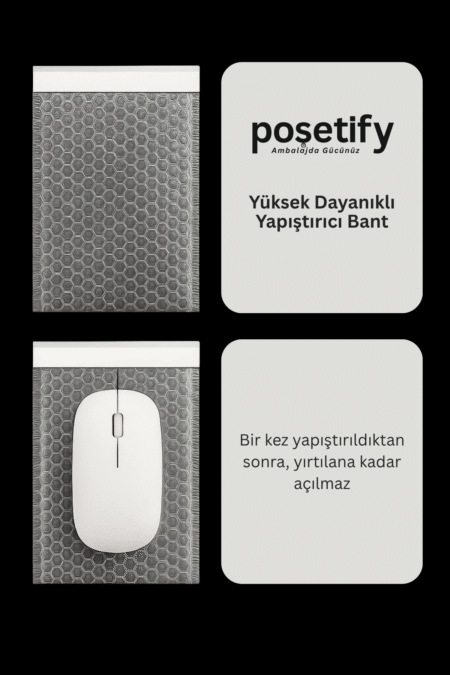 Poşetify’ın 25×30+5 cm ölçüsündeki balonlu şeffaf kargo poşeti, ürünlerinizi korurken aynı zamanda görünür kılar.