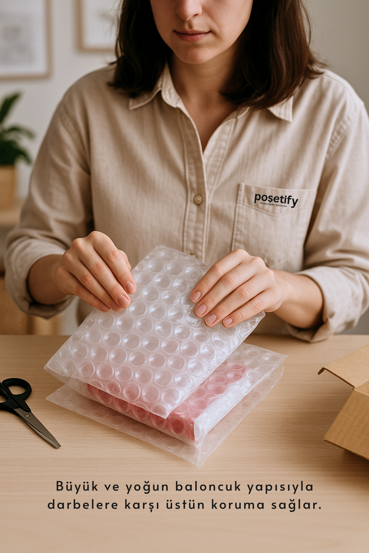 • Poşetify Premium Büyük Balonlu Şeffaf Torba 14x22+12 cm Koruyucu Ambalaj Poşeti