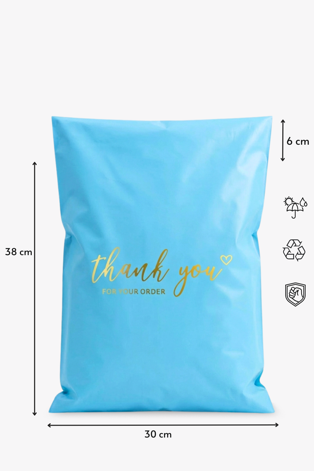 Premium Renkli Kargo Poşeti 30x38x6 cm | Yapışkan Bantlı | 100 Mikron | Mavi | 1. Kalite