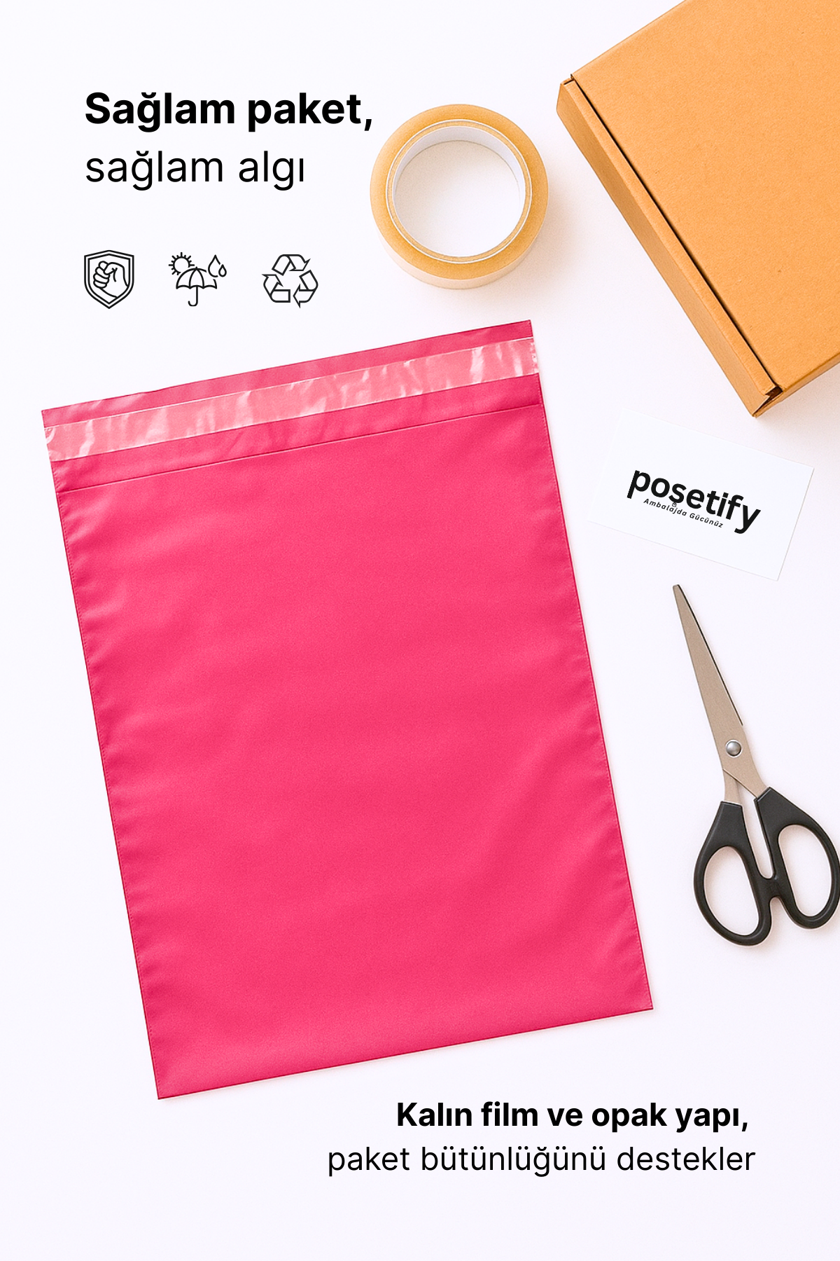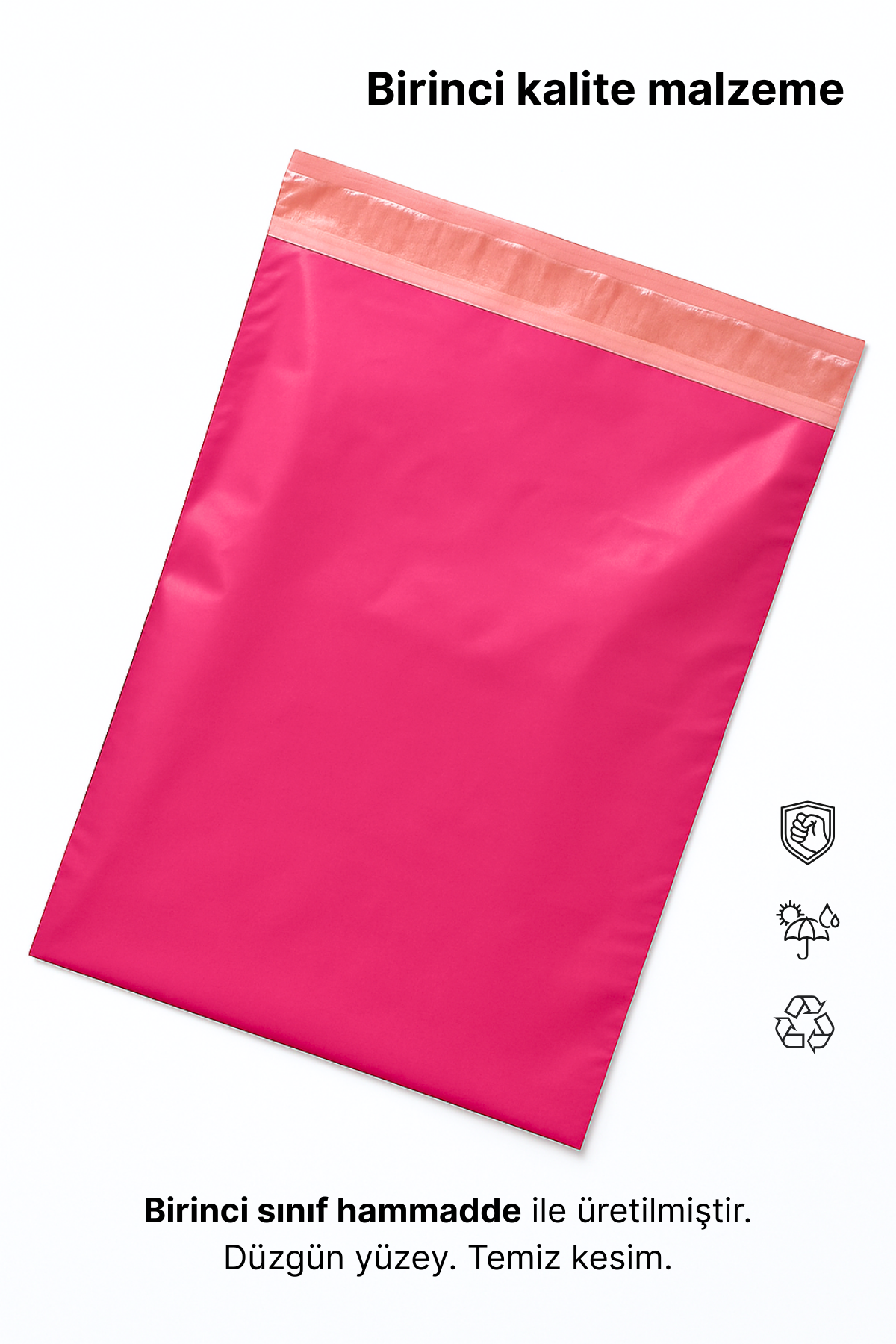 • Renkli Kargo Poşeti | 35x50x5 cm | Yapışkan Bantlı | 100 Mikron | Pembe | 1. Kalite