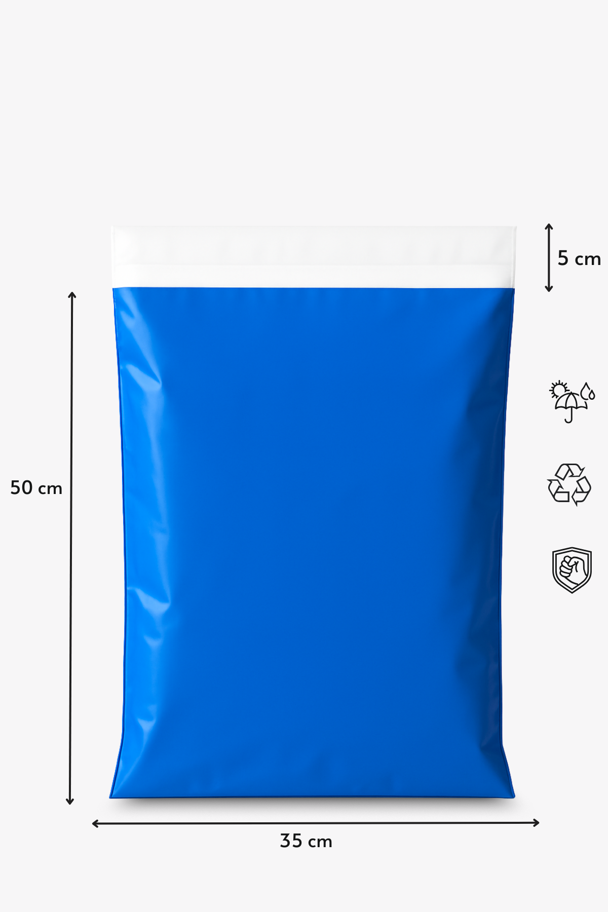 Renkli Kargo Poşeti | 35x50x5 cm | Yapışkan Bantlı | 100 Mikron | Mavi | 1. Kalite